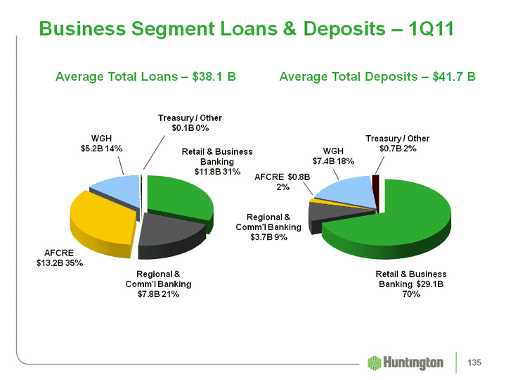 | Business Segment Loans & Deposits - 1Q11 Average Total Deposits - $41.7 B Average Total Loans - $38.1 B (CHART) (CHART) AFCRE $13.2B 35% Retail & Business Banking $11.8B 31% Treasury / Other $0.1B 0% Regional & Comm'l Banking $7.8B 21% WGH $5.2B 14% AFCRE $0.8B 2% Treasury / Other $0.7B 2% Retail & Business Banking $29.1B 70% Regional & Comm'l Banking $3.7B 9% WGH $7.4B 18% 135 |