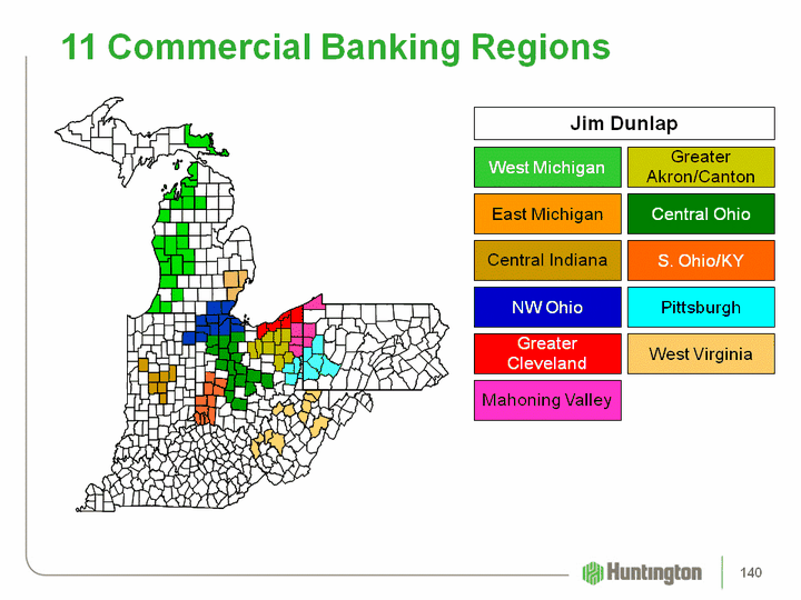 | 11 Commercial Banking Regions GreaterAkron/Canton Mahoning Valley Central Ohio NW Ohio S. Ohio/KY GreaterCleveland Central Indiana West Michigan East Michigan West Virginia Pittsburgh Jim Dunlap 140 |