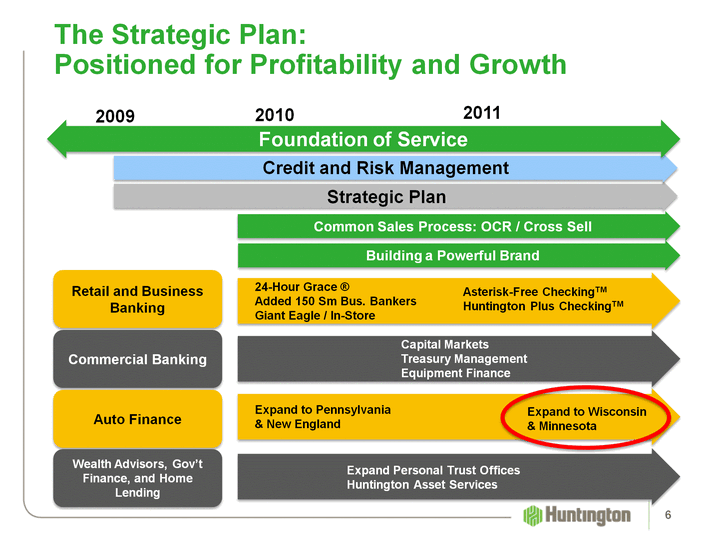 | The Strategic Plan: Positioned for Profitability and Growth 6 Retail and Business Banking Commercial Banking Auto Finance Wealth Advisors, Gov't Finance, and Home Lending 2010 2009 Credit and Risk Management Strategic Plan 24-Hour Grace (r) Added 150 Sm Bus. Bankers Giant Eagle / In-Store Asterisk-Free CheckingTM Huntington Plus CheckingTM Capital Markets Treasury Management Equipment Finance Expand to Pennsylvania & New England Expand Personal Trust Offices Huntington Asset Services Foundation of Service Common Sales Process: OCR / Cross Sell Building a Powerful Brand 2011 Expand to Wisconsin & Minnesota |