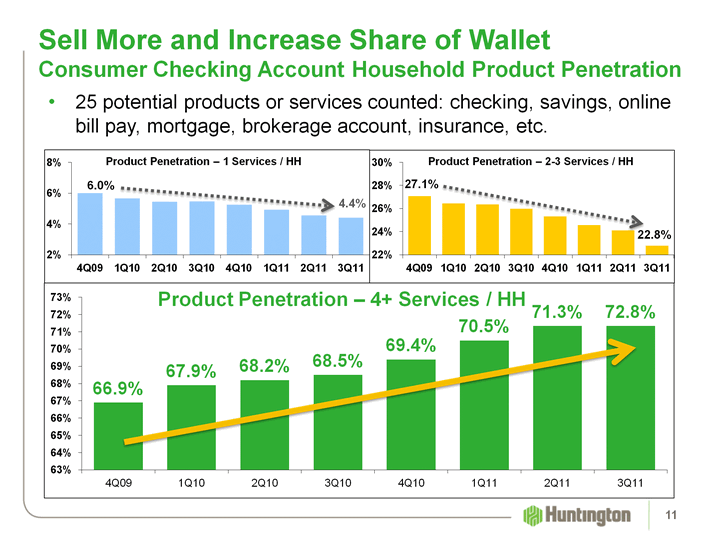 | (CHART) Sell More and Increase Share of Wallet Consumer Checking Account Household Product Penetration Product Penetration - 4+ Services / HH 25 potential products or services counted: checking, savings, online bill pay, mortgage, brokerage account, insurance, etc. (CHART) (CHART) Product Penetration - 1 Services / HH Product Penetration - 2-3 Services / HH 11 |