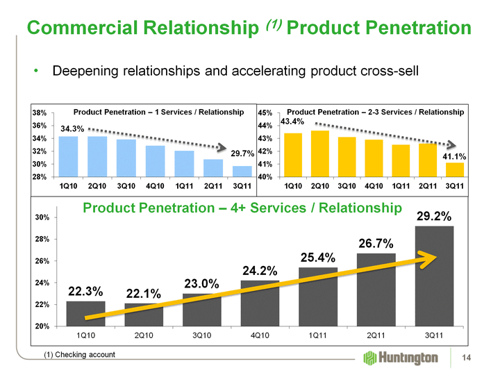 | (CHART) Commercial Relationship (1) Product Penetration Product Penetration - 4+ Services / Relationship Deepening relationships and accelerating product cross-sell (CHART) (CHART) Product Penetration - 1 Services / Relationship Product Penetration - 2-3 Services / Relationship 14 (1) Checking account |