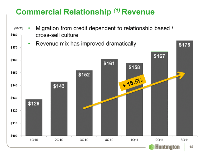 | Migration from credit dependent to relationship based / cross-sell culture Revenue mix has improved dramatically (CHART) 15 Commercial Relationship (1) Revenue ($MM) + 15.5% |
