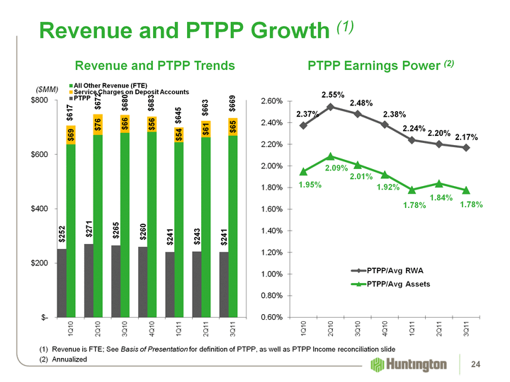 | (CHART) Revenue and PTPP Growth (1) ($MM) (CHART) (1) Revenue is FTE; See Basis of Presentation for definition of PTPP, as well as PTPP Income reconciliation slide (2) Annualized PTPP Earnings Power (2) Revenue and PTPP Trends 24 |