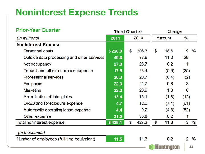 | Noninterest Expense Trends Prior-Year Quarter 33 |
