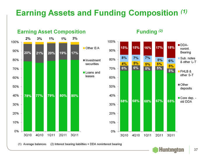 | Earning Assets and Funding Composition (1) (CHART) (1) Average balances (2) Interest bearing liabilities + DDA noninterest bearing (CHART) Funding (2) Earning Asset Composition 37 |