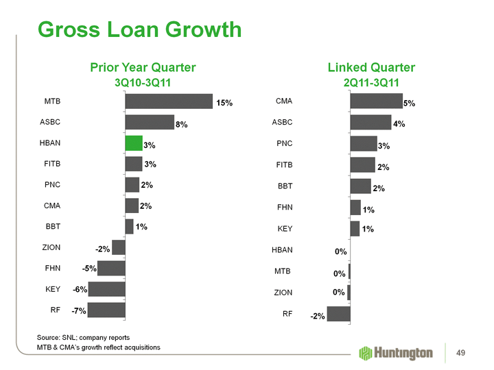 | Gross Loan Growth (CHART) (CHART) Source: SNL; company reports MTB & CMA's growth reflect acquisitions Prior Year Quarter 3Q10-3Q11 Linked Quarter 2Q11-3Q11 49 |
