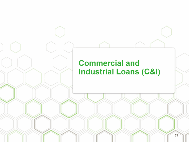 | (CHART) Commercial Loans - Risk Grade Distribution PD Risk Grades (Moody's or Regulatory Definition) Percent of End of Period Balances ($B) $23.6 $20.6 15% 16% 10% 8% 4% 18% 16% 20% 17% 22% 13% 14% 10% 12% 2% 3% 13% 6% 19% 15% 18% 15% 13% 2% $19.7 15% 8% 4% 16% 17% 18% 19% 15% 4% $19.9 52 |