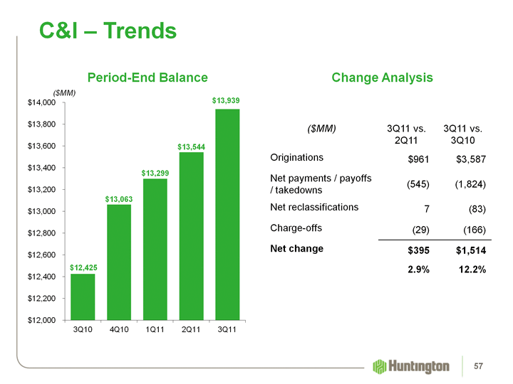 | (CHART) C&I - Trends ($MM) Change Analysis Period-End Balance ($MM) 3Q11 vs. 2Q11 3Q11 vs. 3Q10 Originations $961 $3,587 Net payments / payoffs / takedowns (545) (1,824) Net reclassifications 7 (83) Charge-offs (29) (166) Net change $395 $1,514 2.9% 12.2% 57 |