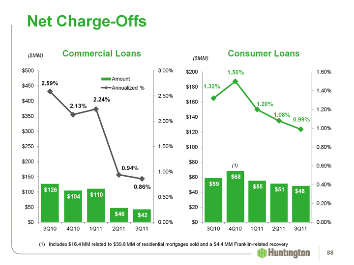 | (CHART) Net Charge-Offs ($MM) ($MM) Consumer Loans Commercial Loans (2) (CHART) (1) Includes $16.4 MM related to $39.8 MM of residential mortgages sold and a $4.4 MM Franklin-related recovery (1) 88 |