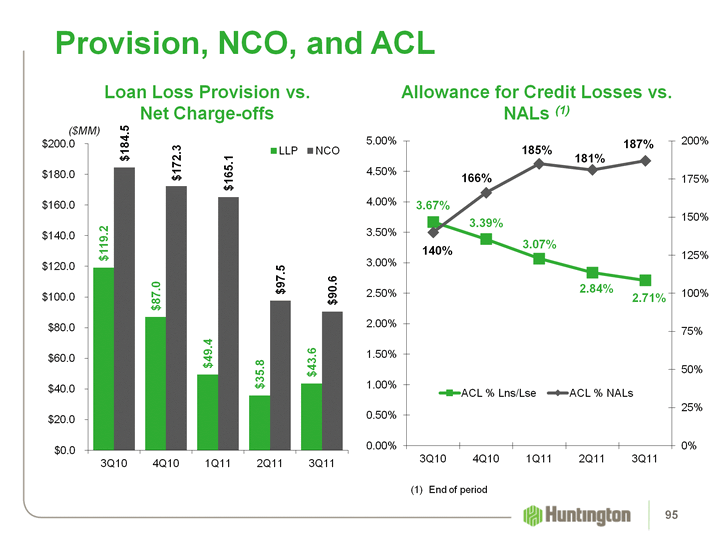| (CHART) (CHART) Provision, NCO, and ACL ($MM) (1) End of period Allowance for Credit Losses vs. NALs (1) Loan Loss Provision vs. Net Charge-offs 95 |