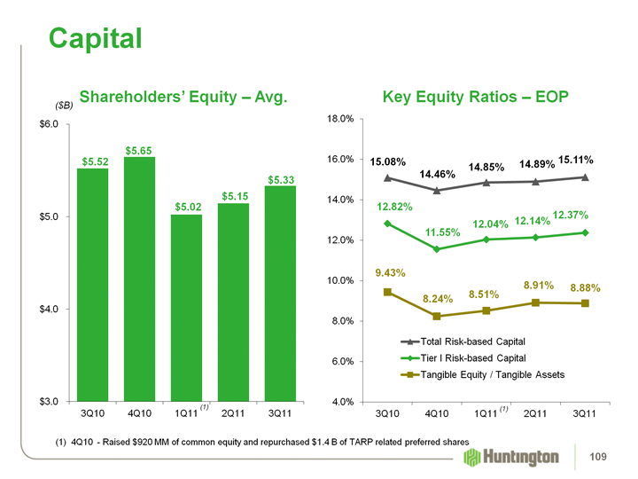| (CHART) Shareholders' Equity - Avg. (CHART) Capital Key Equity Ratios - EOP ($B) 109 4Q10 - Raised $920 MM of common equity and repurchased $1.4 B of TARP related preferred shares |
