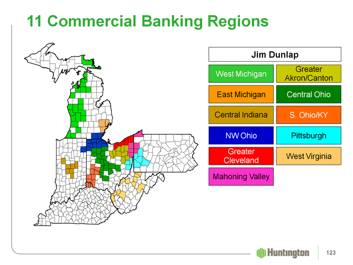 | 11 Commercial Banking Regions Greater Akron/Canton Mahoning Valley Central Ohio NW Ohio S. Ohio/KY Greater Cleveland Central Indiana West Michigan East Michigan West Virginia Pittsburgh Jim Dunlap 123 |