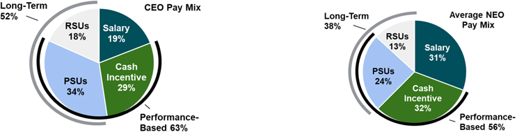 Base salary, annual cash incentives, and long-term equity incentives are evaluated against the median of our peers