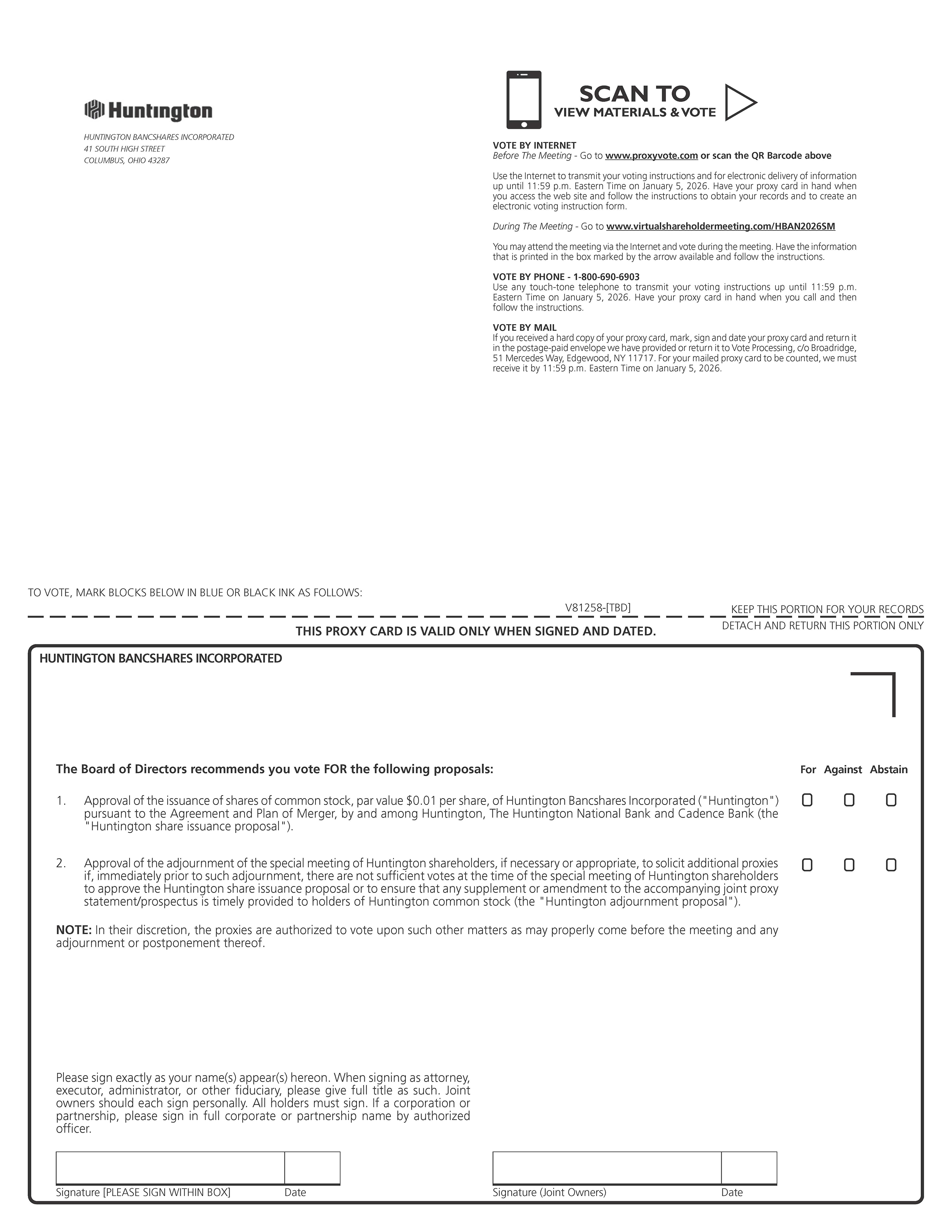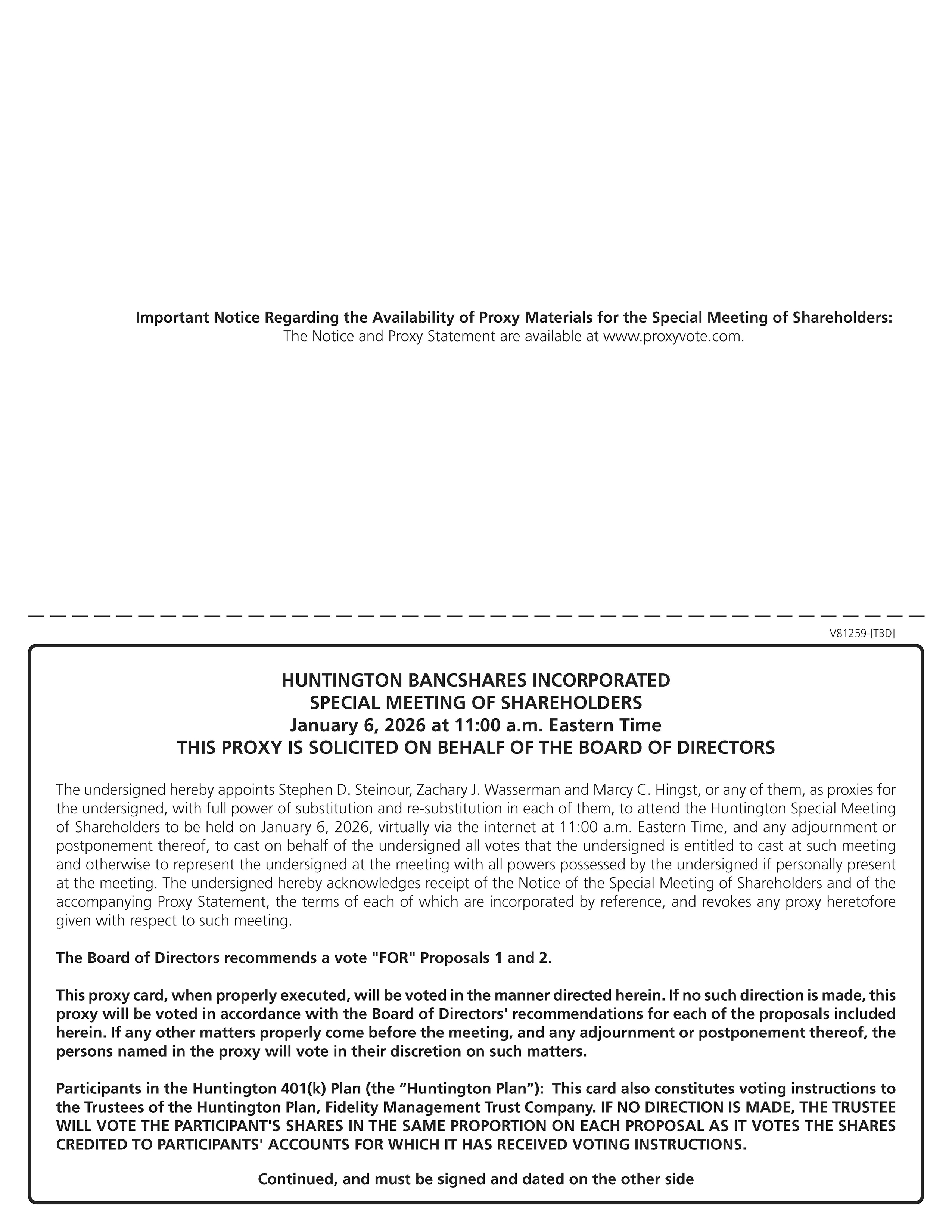 Meeting of Shareholders: The Notice and Proxy Statement are available at www.proxyvote.com. V81259-[TBD] HUNTINGTON BANCSHARES INCORPORATED SPECIAL MEETING OF SHAREHOLDERS January 6, 2026 at 11:00 a.m. Eastern Time THIS PROXY IS SOLICITED