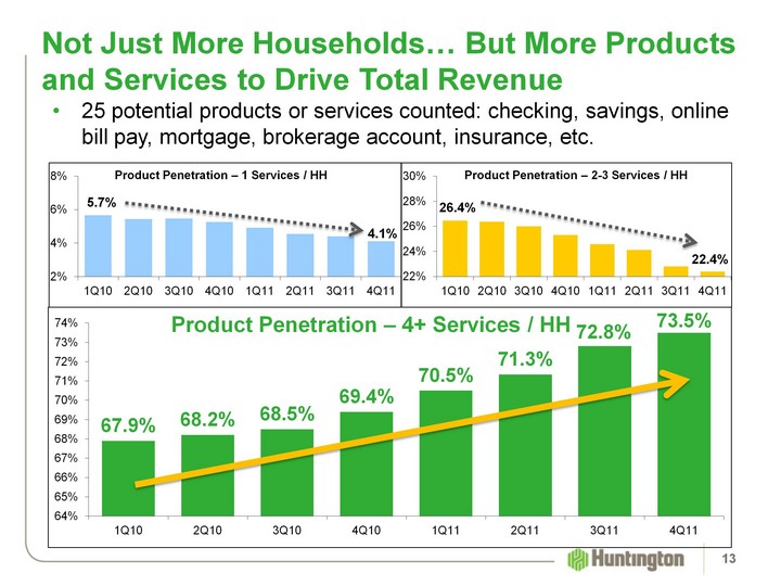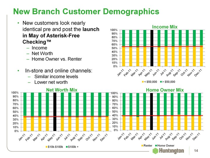 | (CHART) Not Just More Households... But More Products and Services to Drive Total Revenue Product Penetration - 4+ Services / HH 25 potential products or services counted: checking, savings, online bill pay, mortgage, brokerage account, insurance, etc. (CHART) (CHART) Product Penetration - 1 Services / HH Product Penetration - 2-3 Services / HH 13 |
