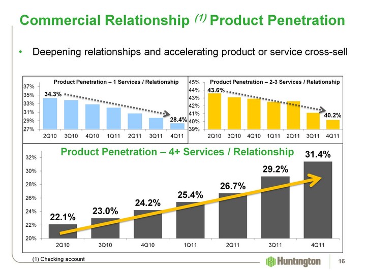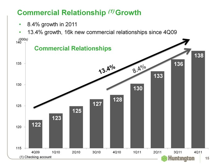 | (CHART) Commercial Relationships 8.4% (1) Checking account 8.4% growth in 201113.4% growth, 16k new commercial relationships since 4Q09 (000s) 15 Commercial Relationship (1) Growth 13.4% |