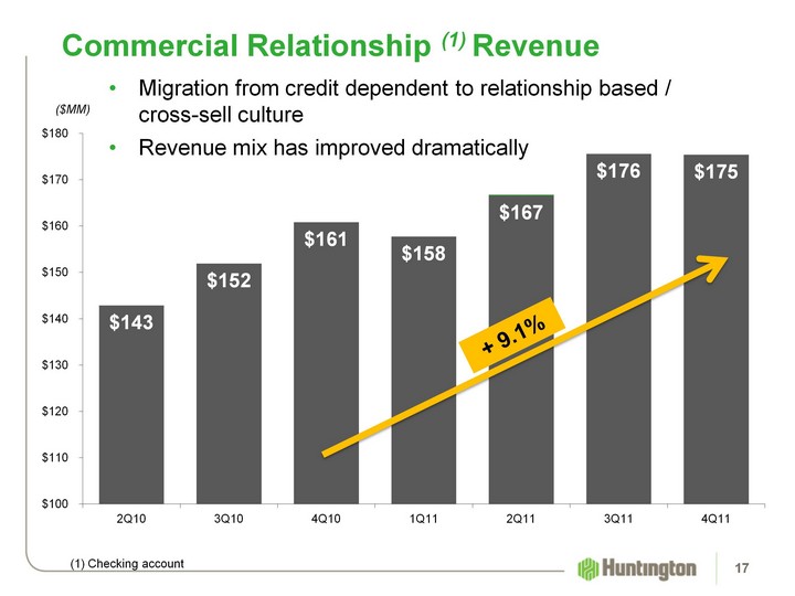| Migration from credit dependent to relationship based / cross-sell cultureRevenue mix has improved dramatically (CHART) 17 Commercial Relationship (1) Revenue ($MM) + 9.1% (1) Checking account |