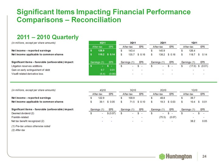 | Significant Items Impacting Financial Performance Comparisons - Reconciliation 2011 - 2010 Quarterly 24 |
