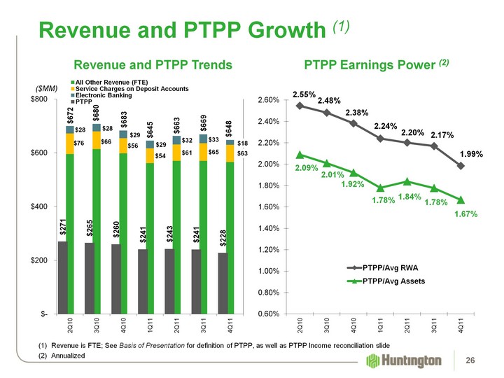 | (CHART) Revenue and PTPP Growth (1) ($MM) (CHART) (1) Revenue is FTE; See Basis of Presentation for definition of PTPP, as well as PTPP Income reconciliation slide(2) Annualized PTPP Earnings Power (2) Revenue and PTPP Trends 26 |