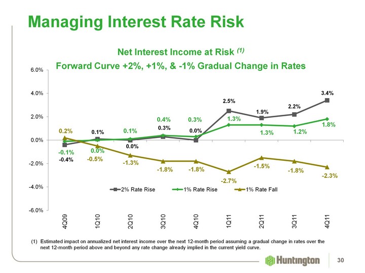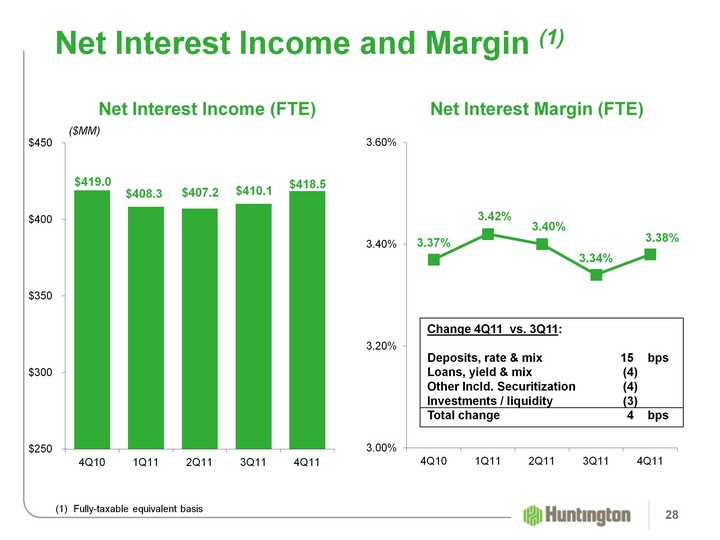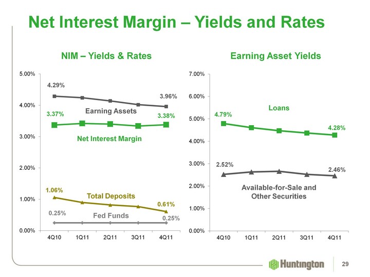 | (CHART) (CHART) Change 4Q11 vs. 3Q11:Deposits, rate & mix 15 bpsLoans, yield & mix (4) Other Incld. Securitization (4)Investments / liquidity (3)Total change 4 bps Net Interest Income and Margin (1) ($MM) (1) Fully-taxable equivalent basis Net Interest Margin (FTE) Net Interest Income (FTE) 28 |