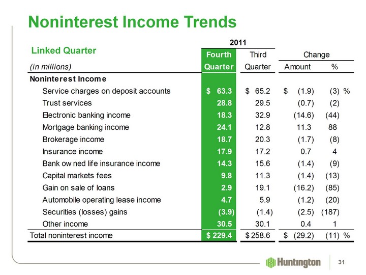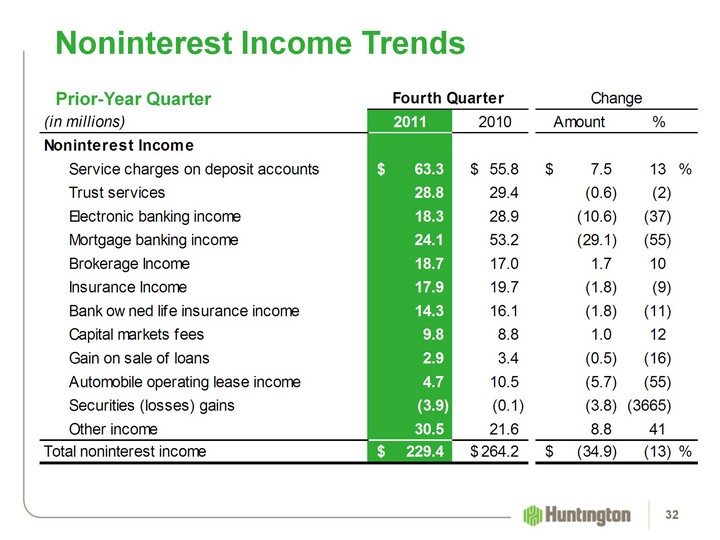 | Noninterest Income Trends Prior-Year Quarter 32 |