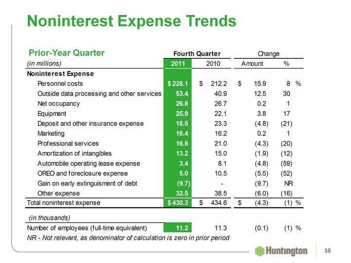 | Noninterest Expense Trends Prior-Year Quarter 35 |