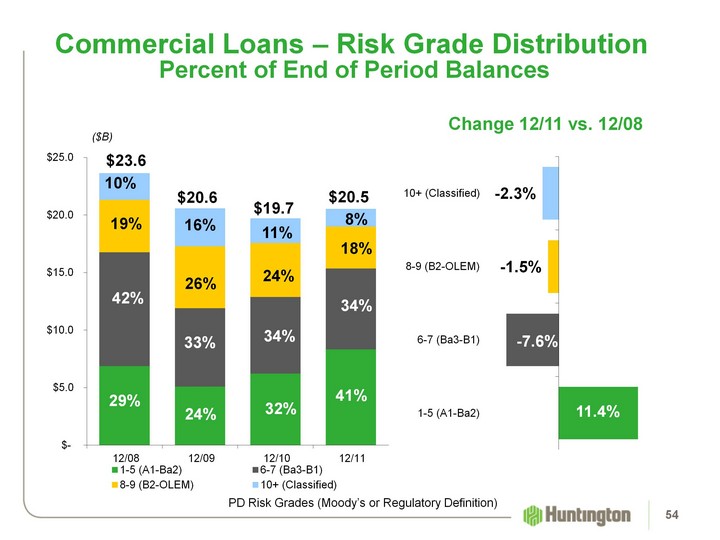 | (CHART) Commercial Loans - Risk Grade Distribution PD Risk Grades (Moody's or Regulatory Definition) Percent of End of Period Balances ($B) $23.6 $20.6 19% 16% 10% 42% 29% 11% $19.7 15% 8% $20.5 54 26% 33% 24% 24% 34% 32% 18% 34% 41% (CHART) Change 12/11 vs. 12/08 |