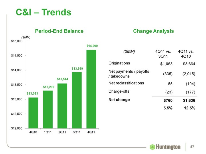 | (CHART) C&I - Trends ($MM) Change Analysis Period-End Balance ($MM) 4Q11 vs. 3Q11 4Q11 vs. 4Q10 Originations $1,063 $3,664 Net payments / payoffs / takedowns (335) (2,015) Net reclassifications 55 (104) Charge-offs (23) (177) Net change $760 $1,636 5.5% 12.5% 57 |