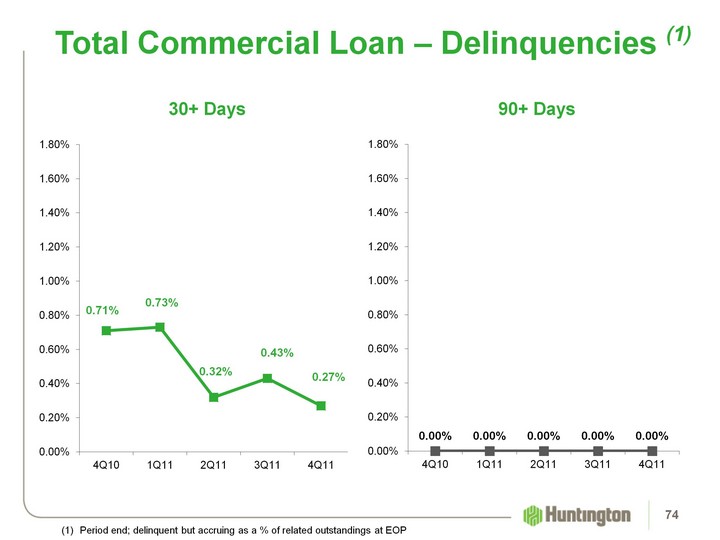 | Total Commercial Loan - Delinquencies (1) (CHART) (CHART) (1) Period end; delinquent but accruing as a % of related outstandings at EOP 90+ Days 30+ Days 74 |