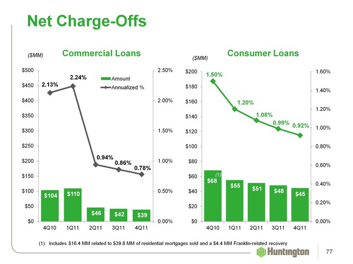 | (CHART) Net Charge-Offs ($MM) ($MM) Consumer Loans Commercial Loans (2) (CHART) (1) Includes $16.4 MM related to $39.8 MM of residential mortgages sold and a $4.4 MM Franklin-related recovery (1) 77 |