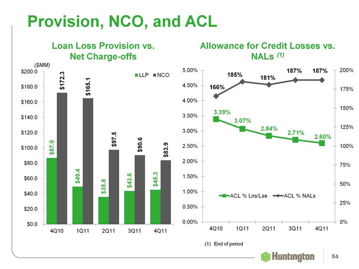 | (CHART) (CHART) Provision, NCO, and ACL ($MM) (1) End of period Allowance for Credit Losses vs.NALs (1) Loan Loss Provision vs.Net Charge-offs 84 |