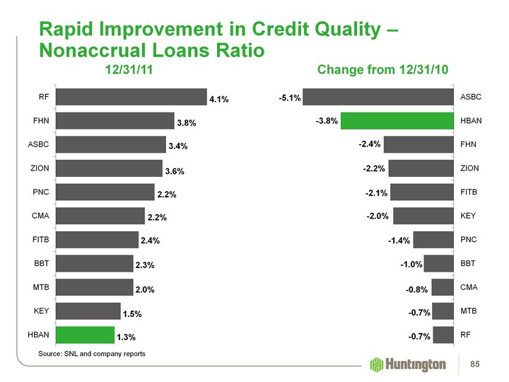 | Rapid Improvement in Credit Quality - Nonaccrual Loans Ratio 12/31/11 Change from 12/31/10 (CHART) Source: SNL and company reports (CHART) 85 |