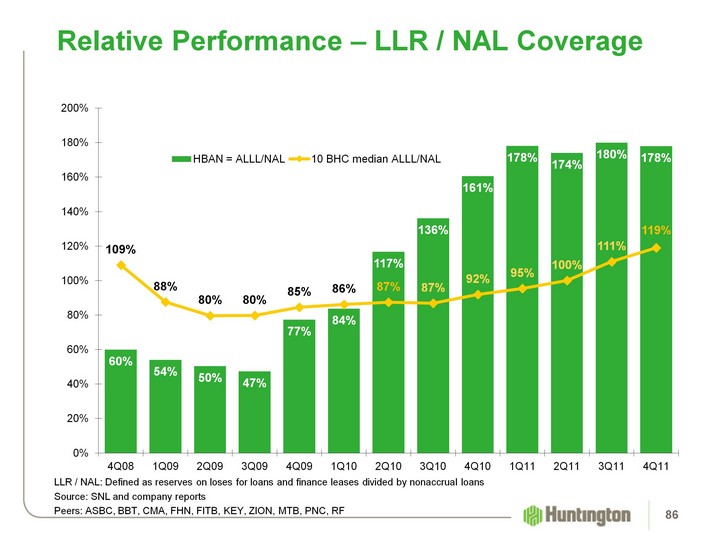 | (CHART) Relative Performance - LLR / NAL Coverage LLR / NAL: Defined as reserves on loses for loans and finance leases divided by nonaccrual loansSource: SNL and company reportsPeers: ASBC, BBT, CMA, FHN, FITB, KEY, ZION, MTB, PNC, RF 86 |