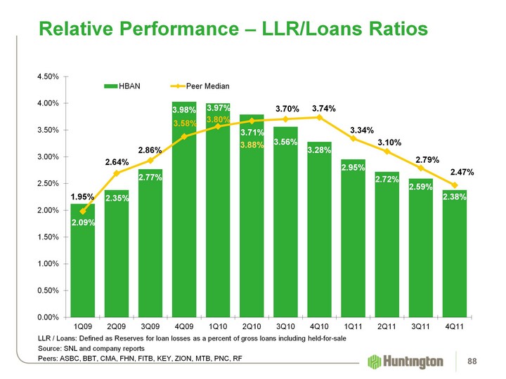 | (CHART) Relative Performance - LLR/Loans Ratios 88 LLR / Loans: Defined as Reserves for loan losses as a percent of gross loans including held-for-saleSource: SNL and company reportsPeers: ASBC, BBT, CMA, FHN, FITB, KEY, ZION, MTB, PNC, RF |