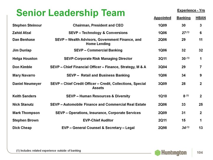| Senior Leadership Team (1) Includes related experience outside of banking 104 |
